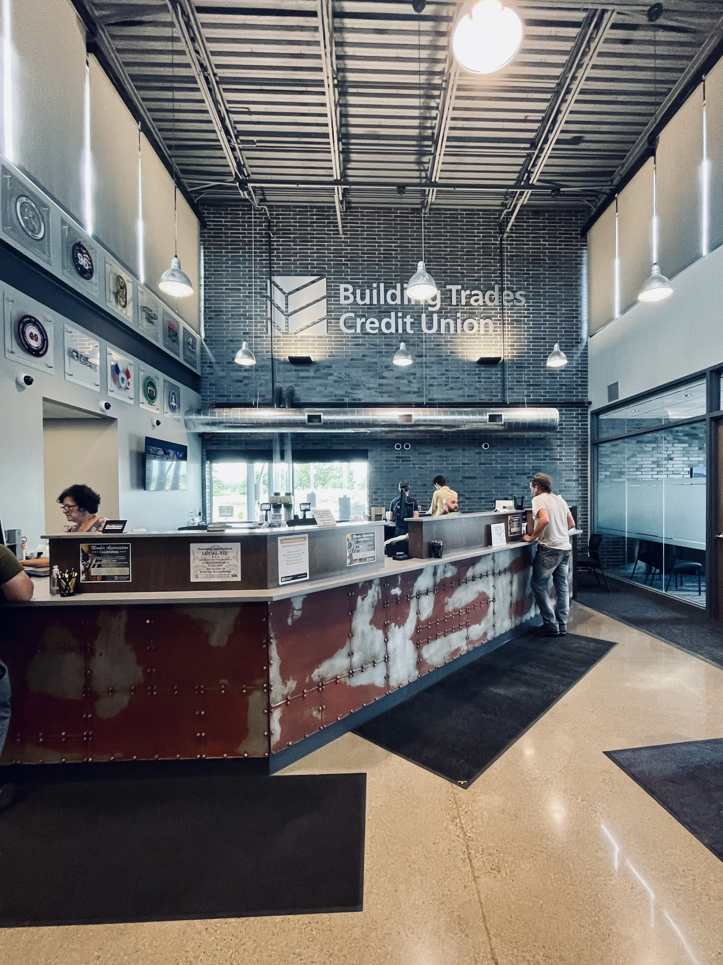 Slide 1 Slide 1 (current slide) Slide 2 Slide 2 (current slide) Slide 3 Slide 3 (current slide) Slide 4 Slide 4 (current slide) Slide 5 Slide 5 (current slide) Building Trades Credit Union | Shoreview, MN BUILDING TYPE Credit Union YEAR BUILT 2023 DESIGN SCOPE Interior Remodel PROJECT SIZE 3,200 sf Are you interested in learning more about our services? Contact Us ➝